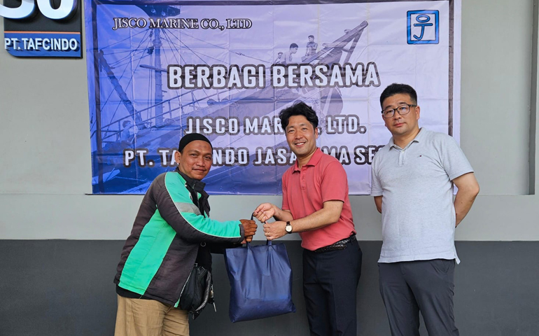 Di Kota Semarang, pembagian sembako berlangsung pada Jumat, 3 April 2026, bertempat di Kantor PT Tafcindo Jasatama Segara Korea, Jalan Cimanuk Raya No. 30, Mlatiharjo, Kecamatan Semarang Timur. Kegiatan ini dihadiri dan dibantu langsung oleh dua Direktur Jisco Marine, Park Jinman dan Son JonPyo.