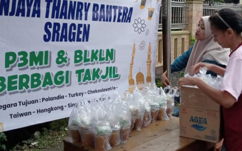 Nampak belasan kandidat pekerja migran terlibat aktif dalam kegiatan tersebut, mereka tidak sungkan meminta para pengendara berhenti sejenak untuk memberikan takjil yang telah disiapkan sejak siang.